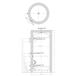 Depósito Inox con serpentín solar/caldera para producción y acumulación de ACS. Temperatura máxima 95ºC. Material: Acero Inox Duplex, Capacidad: 190 litros, Serpentín Principal: 0,83 m2, Medidas: 133x56 cm, Tipo de instalación: Vertical Suelo. Producto Bajo Pedido