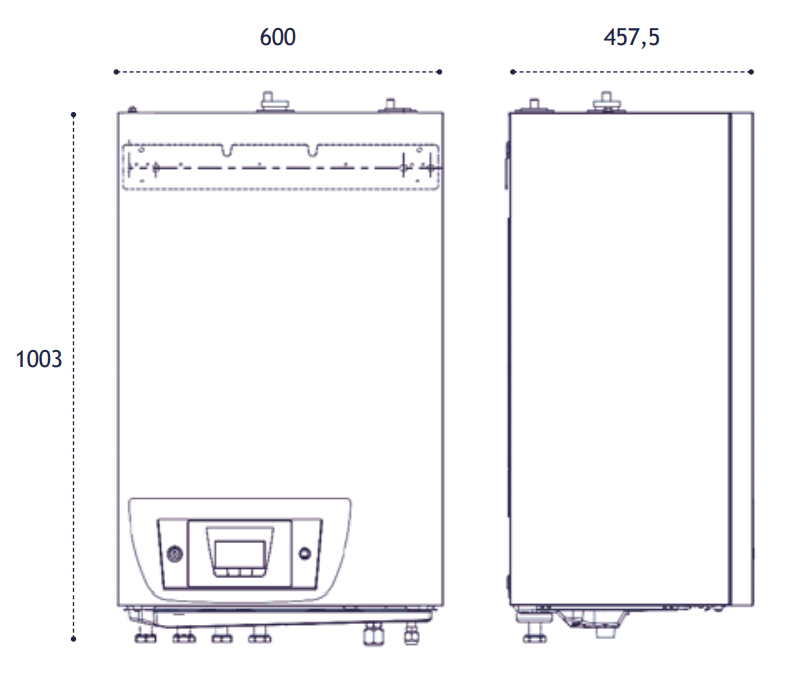 La unidad interior incorpora un depósito de inercia de 40 litros, reduciendo los arranques de la unidad exterior y prolongando la vida útil del equipo. Su avanzada electrónica permite el funcionamiento en cascada de hasta 10 bombas de calor, tanto en calor como en frío, y el control de hasta 3 circuitos de calefacción a diferentes temperaturas.