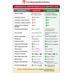 La ARISTON NUOS PLUS S2 250 SYS WIFI FS no es solo un termo, es una solución completa de aerotermia para ACS que combina eficiencia energética, conectividad inteligente y máxima durabilidad. Perfecta para quienes buscan reducir su consumo, mejorar el confort y apostar por una tecnología sostenible.
