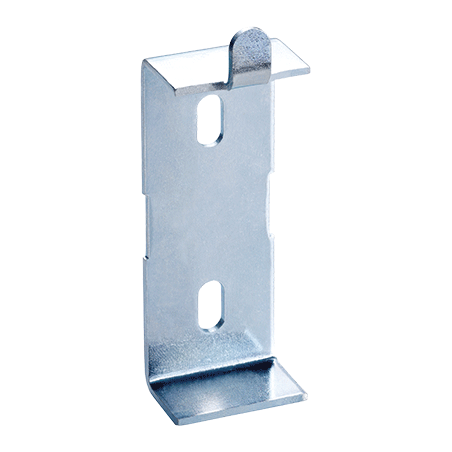 Fabricado en acero zincado. Fijación simple por la parte posterior del radiador. Por su posición se hace invisible la fijación, queda oculto tras el radiador. Está provisto de dos taladros en forma de coliso vertical que permite su regulación. Indicado para radiadores de aluminio.