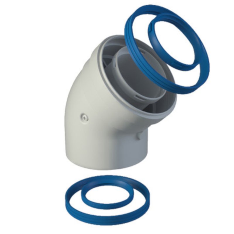Codo de 45º coaxial de 60/100 Ø con tomas Hembra-Hembra, para calentadores estancos COINTRA, ARISTON, VAILLANT, etc.