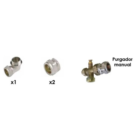 Kit para la conexión hidráulica de un panel solar incluyendo racores y cruz a elegir con purgador portasonda.