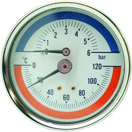Grupo de Seguridad para CALEFACCIÓN con cuerpo en latón, manómetro 6 bares, válvula seguridad certificada 4 bar y purgador de boya.
