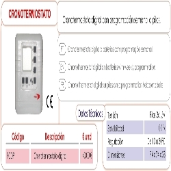 Cronotermostato Digital, Programación: Semanal, FRÍO/CALOR, Alimentación/Tensión: Pilas, Conexión por: Cable, Zonas: 1, Temperaturas: 2