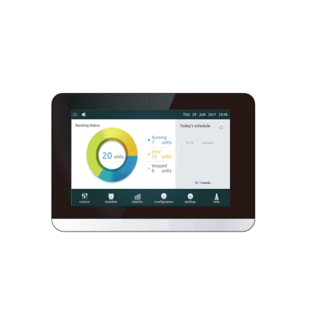 El Control Centralizado JOHNSON JVRCM180 es la solución ideal para gestionar de forma eficiente múltiples unidades de aire acondicionado en instalaciones comerciales o residenciales de gran tamaño. Con una pantalla táctil de 6,2 pulgadas, este avanzado sistema permite un manejo intuitivo y rápido de todas las configuraciones del sistema.