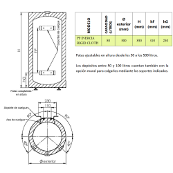 El modelo PF-AC RIGID CLOTH incorpora un aislamiento térmico de poliuretano rígido, con una densidad de 45kg/m³ y 60mm de espesor, lo que permite minimizar las pérdidas de calor y mejorar la eficiencia energética. Gracias a su diseño compacto y soporte mural, se adapta fácilmente a cualquier espacio, facilitando su instalación y mantenimiento.
