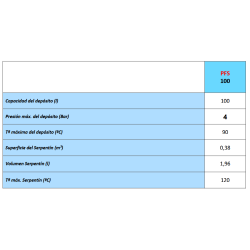 - Presión de trabajo de 4 bares, con serpentín soportando hasta 8 bares.