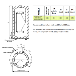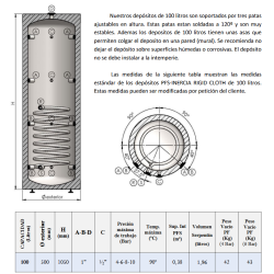 Especificaciones técnicas del Depósito Inercia con Serpentín VALINOX PFS-AC RIGID CLOTH 100L