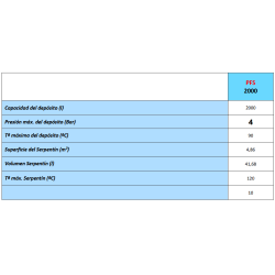 Calderín: Acero al Carbono, capacidad: 1500 litros, Medidas: 228 X 116 cm, Instalación: Suelo, Resistencia: No