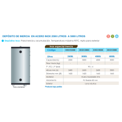 Depósito de acumulación con serpentín para circuito primario de agua caliente o fría para calefacción/refrigeración, producida por cualquier fuente de energía, tradicional o renovable. Calderín: Acero al Carbono, Capacidad: 3000 litros, Medidas: 235x160cm, Superficie intercambiador: 6,48 m2, Tipo soporte: Arillo inferior, Conexiones circuito: 3", Presión de trabajo del depósito: 4 bar