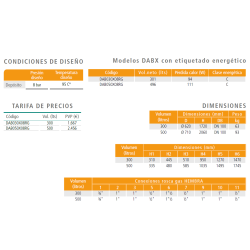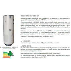 Acumulador de 300 litros en acero inoxidable AISI 444, para la producción de ACS para uso doméstico ó industrial, ofrece una conexión a un intercambiador de placas externo (opcional), para el apoyo de una caldera, placas solares, etc.