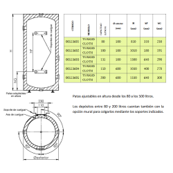 Su capacidad de 200 litros y sus dimensiones de 130 x 60 cm permiten una instalación vertical y mural, adaptándose a diferentes espacios y necesidades. El calderín de acero inoxidable ha sido sometido a rigurosas pruebas hidráulicas a 9 bares, asegurando la máxima seguridad y fiabilidad en su funcionamiento.