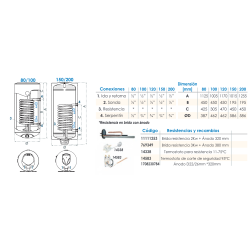 Este modelo incorpora un serpentín esmaltado de gran superficie con conexiones en el lado derecho, optimizado para maximizar el intercambio térmico. También incluye un ánodo de magnesio, una resistencia eléctrica de 1,5 kW con termostato externo y una válvula de seguridad testada a 8 bar, ofreciendo múltiples opciones de funcionamiento para adaptarse a distintas fuentes de calor. Su presión máxima de trabajo en el calderín alcanza los 6 bares y puede soportar temperaturas de hasta 95°C, lo que garantiza un rendimiento robusto incluso en condiciones exigentes.
