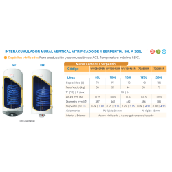Calderín: Polywarm® Capacidad: 291 litros y 81 litros (depósito de inercia), Nº de Serpentines: 2 de 1,4 y 0,9 m2, Medidas: 188x65cm, tipo soporte: Suelo