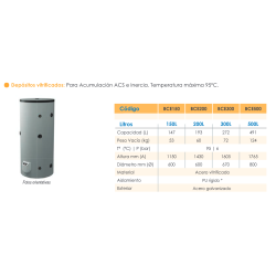 Calderín: POLYWARM®, capacidad: 192 litros, Medidas: 145 X 55 cm, Aislamiento: 5cm, Resistencia: Opcional 1"½