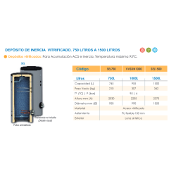 Este acumulador trabaja a una temperatura máxima de 95ºC y soporta hasta 6 bares de presión, lo que lo convierte en una opción robusta y fiable. Incorpora tomas de 1"½ y un aislante flexible de PPU de 10 cm, mejorando la eficiencia energética al reducir pérdidas térmicas.
