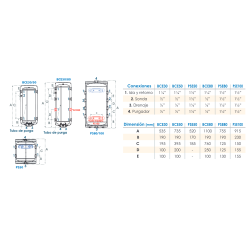 Calderín: Vitrificado , Capacidad 500 litros , 1 serpentín de 6,00 m2 , Medidas: 171x75 , tipo soporte: Suelo , Resistencia: Opcional, Temperatura máxima trabajo: 95º, Presión máxima: 8 bar