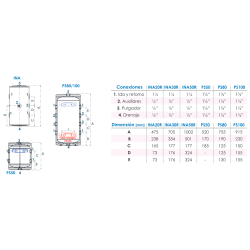 Calderín: Vitrificado, Capacidad: 1500 litros, 1 serpentín de 3,70 m2, ACS: 412l, Depósito Inercia: 1000l, Medidas: 218x99cm, Resistencia: No
