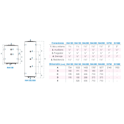 Revestimiento interno: ACERO INOXIDABLE, Capacidad Total: 130 litros, Capacidad ACS: 75 litros, Superficie de intercambio: 1,03 m2. Tank in Tank, Medidas: 100x53cm, Instalación: Mural vertical. Modelo CON resistencia eléctrica de 2200W.