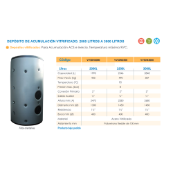 Lo más importante: Este acumulador de 2.346 litros destaca por su alta capacidad, durabilidad gracias al acero vitrificado, eficiencia térmica y versatilidad de instalación, siendo una opción ideal para sistemas centralizados de ACS en grandes instalaciones.