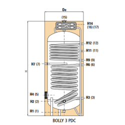 Los interacumuladores BOLLY ® 2 PDC incluyen 2 sserpentines fijos adicionales construidos en acero carbono con revestimiento Polywarm ® como apoyo al calentamiento de la bomba de calor mediante otras fuente de energía.