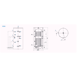 Depósito para producción y acumulación de Agua Caliente Sanitaria (ACS). Para un funcionamiento estándar a 6 bars en Inox Aisi-444. Calderín: Acero Inox, Capacidad: 150 litros, Serpentín: 1,9m2, Medidas: 102 X 60 cm, Resistencia opcional.