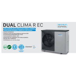La Bomba de Calor Aerotermia DOMUSA DUAL CLIMA 16R EC es una solución de climatización de última generación que ofrece calefacción, refrigeración y agua caliente sanitaria (ACS) en un solo sistema. Gracias a su innovadora tecnología Monobloc, todo el circuito frigorífico está contenido en la unidad exterior, lo que permite una instalación rápida, segura y sin necesidad de manipular gases refrigerantes.