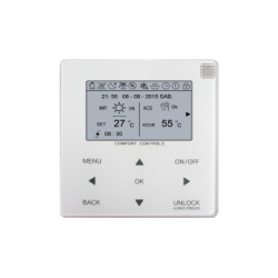 Otras ventajas del mando de control remoto son su modo Silencioso, para reducir el nivel sonoro del equipo (por ejemplo, durante el funcionamiento nocturno), y la posibilidad de realizar el control de dos zonas con diferentes temperaturas de trabajo. Y además, está preparado para conectarse con un sistema de energía fotovoltaica, con una "Red Inteligente" e incluso con un control externo (señales remotas de on/off y heat/cool). Además, dispone de serie de comunicación MODBUS para conectar el equipo a un sistema de control centralizado.