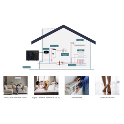 Su funcionamiento es óptimo durante todo el año y en cualquier clima, ya que soporta temperaturas exteriores extremas, desde -25ºC en calefacción hasta 46ºC en refrigeración. Además, ofrece un amplio rango de temperatura de impulsión del agua, desde 5-30ºC en refrigeración, 12-75ºC en calefacción y 10-70ºC en ACS, garantizando confort térmico incluso en condiciones adversas. Es compatible con fan coils, radiadores de pared y suelo radiante, cubriendo todas las necesidades de climatización y agua caliente sanitaria de una vivienda.