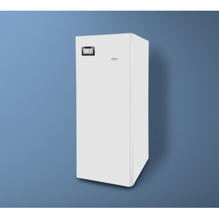 Modelo EC con conectividad integrada a través la app iConnect. Uso: ACS+Calefacción+Refrigeración, Potencia Frio/Calor: 11/11,95 kW, Conexiones: 1", Temp. Externa: -25/+45º, Medidas: 90x112x42cm, Clase energética A+++/A++.
