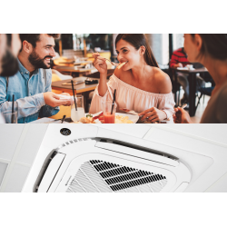 Con un diseño compacto y elegante, este cassette se adapta perfectamente a falsos techos reducidos gracias a una altura mínima de tan solo 245 mm. Las unidades exteriores también han sido rediseñadas con un único ventilador en toda la gama, lo que reduce volumen, ruido y facilita la instalación en espacios con limitaciones físicas.