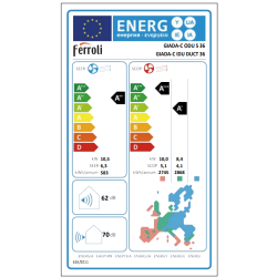 El Aire Acondicionado Conductos FERROLI GIADA C 36 es una solución de climatización eficiente, silenciosa y compacta, ideal para integrarse en instalaciones residenciales o comerciales que requieren discreción y alto rendimiento. Se trata de un sistema split 1x1 Inverter DC que utiliza refrigerante ecológico R32, garantizando un bajo impacto ambiental y un excelente comportamiento energético con calificación A++/A+++.