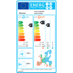 Eficiencia energética Frio: A++, Calor: A+, 8.600 Frigorias/hora, 9.460 Kcal/h, DB(A)Unidad Exterior: 60, Consumo anual frío: --- kw/h, Consumo anual calor: --- kw/h