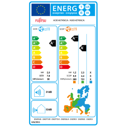 Eficiencia energética Frío: A++, Calor: A+, 2.408 Frigorias/hora, 3.182 Kcal/h, DB (A) Unidad Interior: 40 / 33 / 26 / 20, Unidad Exterior: 46/47, Consumo anual frío: 135 kwh, Consumo anual calor: 801 kwh