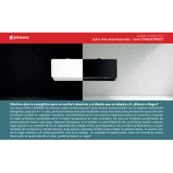 El Aire Acondicionado JOHNSON EVEREST 25 WIFI es mucho más que un sistema de climatización. Con clasificación energética A+++, está diseñado para ofrecerte el máximo ahorro en tu factura eléctrica sin renunciar al confort. Y no solo eso: su diseño moderno y elegante, con acabado mate y frontal de cristal, está disponible en color blanco (Serie ETNA) o negro (Serie Everest), para que elijas el que mejor se adapta a tu estilo.