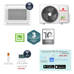 Además, la JPMV3 es compatible con los sistemas multisplit Johnson MultiComfort3 y Multi Hybrid, lo que te ofrece una gran versatilidad si necesitas climatizar varias zonas del hogar. Y si deseas controlarla a distancia, puedes añadir el accesorio de conexión Wi‑Fi opcional, lo que permite manejarla desde la app móvil NetHome Plus o mediante comandos de voz con Alexa y Google Home.