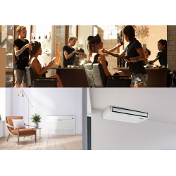 Gracias a su diseño ultradelgado, con solo 235 mm de altura, y a que las unidades exteriores cuentan con un único ventilador, este equipo es ideal para lugares donde el espacio es reducido. Pero su compacto tamaño no limita su potencia ni su tecnología, ya que incorpora prestaciones que lo hacen más eficiente, duradero y fácil de mantener.