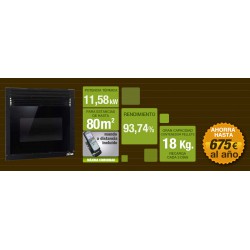 Combustible: Pellets, Medidas: 58x70x54, Potencia: 11,58kW, Ø Salida Gases: 8cm, Para estancias de: 80m2