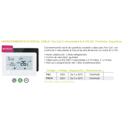 Especificaciones técnicas del Cronotermostato Digital Frío/Calor FERCO FT4C