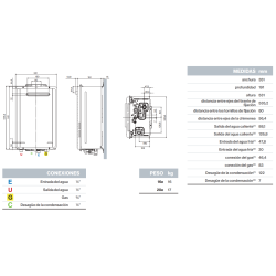 Calentador de Condensación para Gas Butano/Propano, Caudal: 32 litros/minuto, Medidas: 67x47x27.6 cm, Consumo gas año: 22 Gj. No incluye salida de humos.