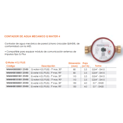 El Contador de Agua Mecánico Q Water 4 SJ PLUS de QUNDIS es un medidor de agua frío de alta precisión, diseñado especialmente para instalaciones domésticas o comerciales donde se requiere control y registro del consumo de agua.
