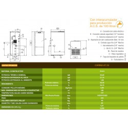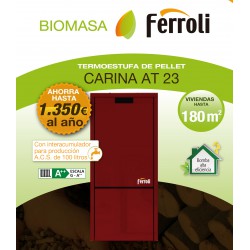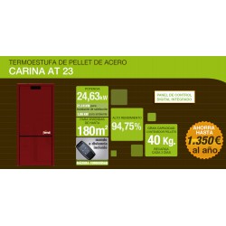 La termoestufa de pellet CARINA AT 23 representa la forma más cómoda, sencilla, económica y elegante de calefactar una vivienda de hasta 180 m2, cediendo una pequeña parte de ese calor al propio ambiente donde se encuentra instalada. De esta forma es capaz de aprovechar todo el calor generado por el pellet consumido obteniendo unos rendimientos impensables hasta el momento.