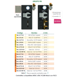 Grupo solar: 1 vía, Centralita: Opcional (necesaria placa para centralita solar), Caudal: de 2 a 12 l/min, Bomba: Grundfos 15/70 Hybrid, Medidas: 17x37x16 cm