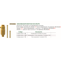 Este modelo ofrece la posibilidad de incluir un desaireador montado más un separador en el grupo, lo que facilita la eliminación de aire del sistema y mejora su funcionamiento. Si deseas añadir alguna otra opción, solo tienes que ajustar el código del producto:
