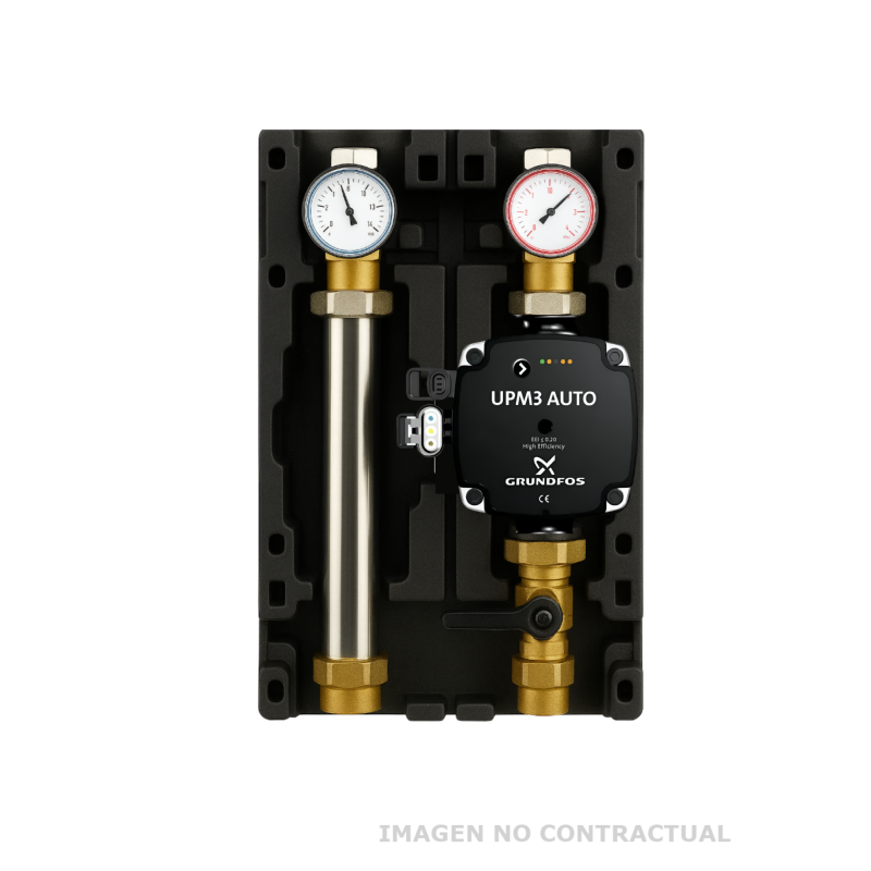 Este grupo de bombeo incluye una bomba Grundfos UPM4XL 25/90, una bomba circuladora diseñada para aplicaciones de climatización que ofrece: