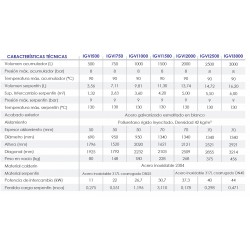 Depósito de Gran Volumen con Doble Serpentín para producción y acumulación de Agua Caliente Sanitaria (ACS). Funcionamiento estándar a 8 bars en Inox 316L. Calderín: Acero inoxidable, Capacidad: 750 litros, Serpentín Sobredimensionado: 5,7 m2, Serpentín Auxiliar: 1,68 m2, Medidas: 200 X 80 cm, Resistencia opcional.