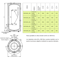 Depósito con serpentín extraíble y bocas de registro para producción y acumulación de Agua Caliente Sanitaria (ACS). Funcionamiento estándar a 8 bars en Inox 316L. Calderín: Acero inoxidable, Capacidad: 1500 litros, Serpentín Principal: 3,05 m2, Medidas: 215 x 125 cm, Tipos de boca de registro: DN400 y DN400, Tipo de instalación: Vertical, Resistencia opcional.