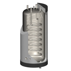 Depósito con serpentín extraíble y bocas de registro para producción y acumulación de Agua Caliente Sanitaria (ACS). Funcionamiento estándar a 8 bars en Inox 316L. Calderín: Acero inoxidable, Capacidad: 500 litros, Serpentín Principal: 1,2 m2, Medidas: 200 x 80 cm, Tipos de boca de registro: DN300 y DN200, Tipo de instalación: Vertical, Resistencia opcional.