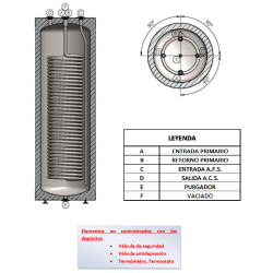 Presión ACS: 6BAR, Temperatura máxima de trabajo: 90ºC, Medidas: 151x52cm, Capacidad: 500l