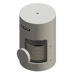 Depósito con serpentín extraíble y bocas de registro para producción y acumulación de Agua Caliente Sanitaria (ACS). Funcionamiento estándar a 8 bars en Inox 316L. Calderín: Acero inoxidable, Capacidad: 750 litros, Serpentín Principal: 1,6 m2, Medidas: 200 x 80 cm, Tipos de boca de registro: DN300 y DN200, Tipo de instalación: Vertical, Resistencia opcional.